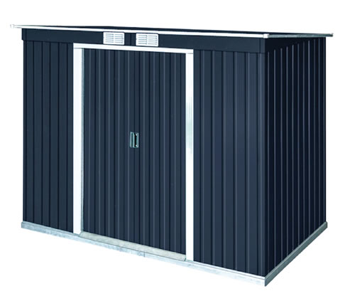 DuraMax 8.5’W x 4’D Pent Roof Metal Shed Kit w/ Vents – Dark Gray with White Trim (model 50651)